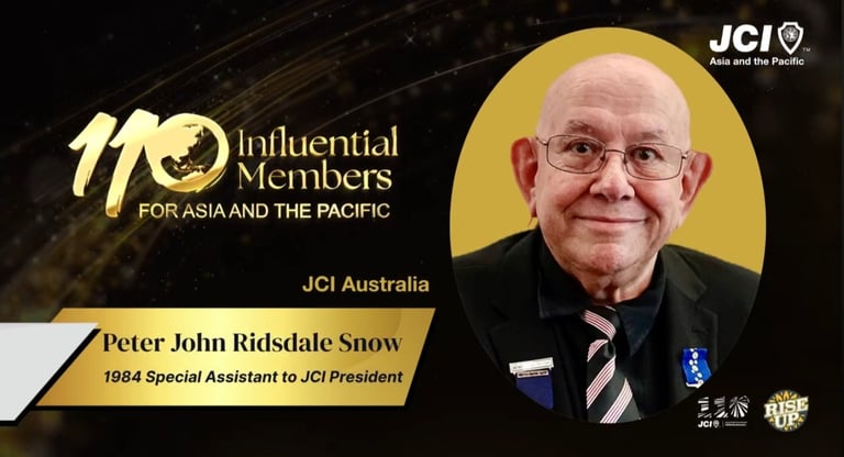 Abandoning early paths to engineering and accounting, Peter instead built a lifetime of service, leadership, and innovation. He credits his confidence and direction to JCI (formerly Jaycees International), which he joined in Fremantle in 1970.