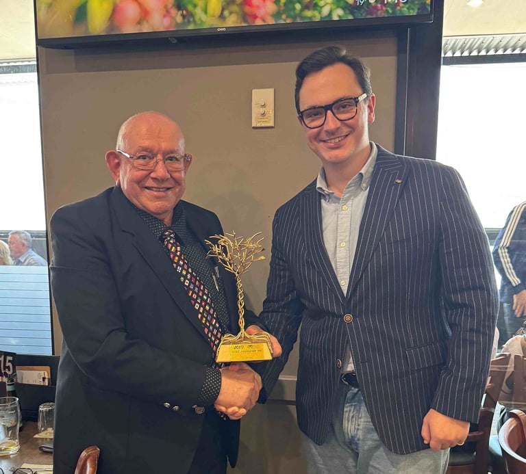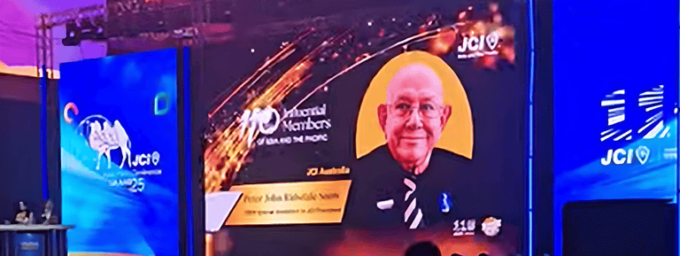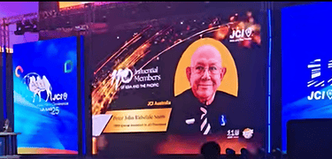 JCI Australia Deputy President Alex Beard flew into Perth to present JCI Senator Peter J Snow OAM with his “Tree of Life” award for being recognised as one of the 110 Influential Members of JCI in the Asia-Pacific