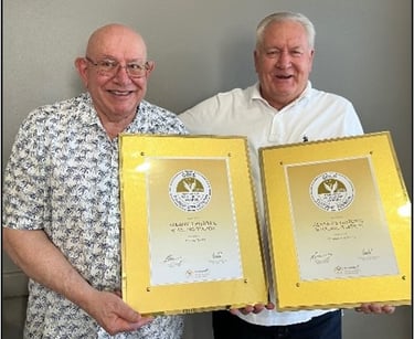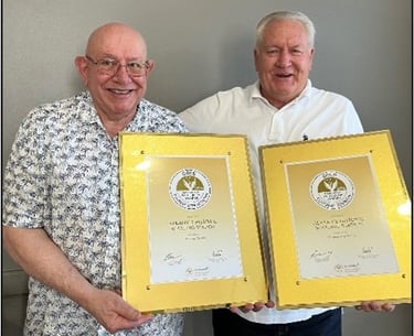 Pictured from left: Peter J Snow (Patron) and Glenn Russell (Chairman of Albany's Historic Whaling Station) with the 2025 Tourism Awards